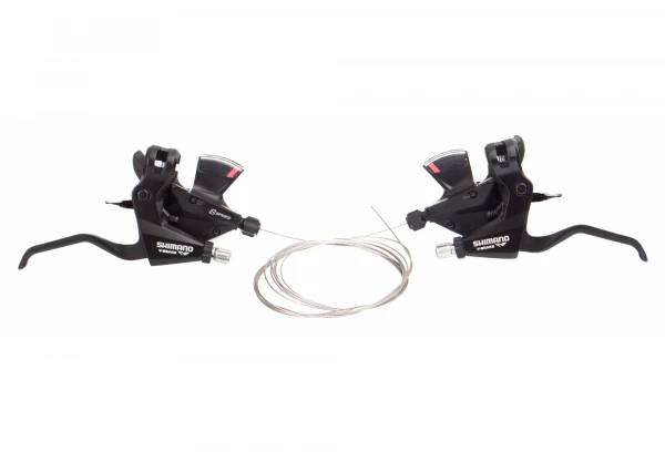Paire de commandes de vitesses Shimano Altus 3×8 vitesses avec frein v-brake intégrés.