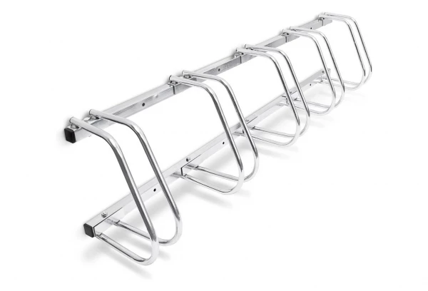 Râtelier pour 5 vélosCompatible pour tous vélos avec un pneu jusqu’à 5 cm de largePour fixation au sol et au murMatériau : acier chroméDimensions (l x H x P) : env. 130 x 26 x 32 cmHelloshop26 3413004