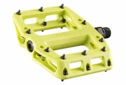 Des pédales de VTT plates en nylon résistant dotées de picots remplaçables pour une adhérence à toute épreuve.