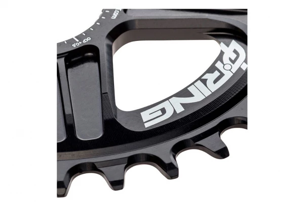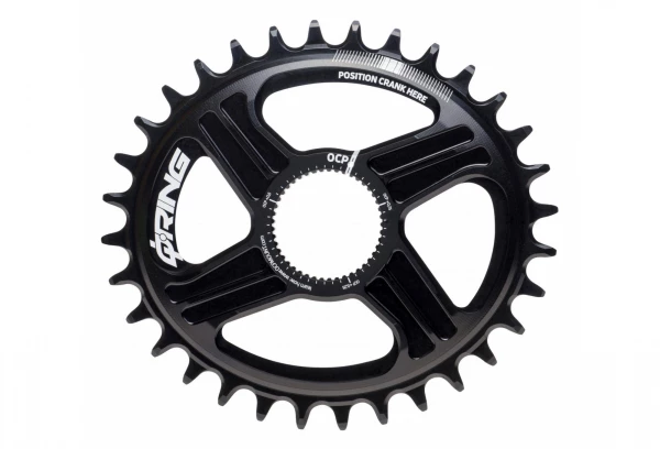 Cette fixation utilise des micro-cannelures permet de régler la position des plateau Q-Rings selon son besoin. Ce dernier est au standard Direct Mount dans le but d’améliorer la rigidité mais surtout de réduire le poids de plus de 40gr par rapport à un ensemble étoile/plateau/visserie.