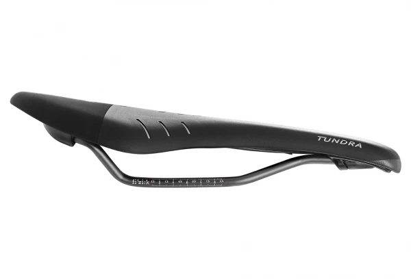 Conçue pour le Cross-Country, la selle FIZIK Tundra se distingue par un profil plat, un nez long et des mesures serrées. L’ensemble permet un meilleur support et un transfert plus efficace, sans négliger la flexibilité, nécessaire à la pratique du VTT. Composée de matériaux de haute qualité, la Tundra se caractérise par sa conception solide et légère, grâce notamment, à sa coque en Carbone et ses rails en Alliage K:ium. Le dessus MicroTlex procure une très bonne assise et assure tous le confort nécessaire.