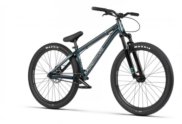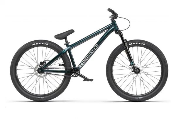 Le vélo de dirt Radio Griffin est construit avec un cadre en alliage 6061-T6 et avec des composants Maxxis, RST, Tektro, Race Face et FSA, ce qui e fait un vrai vélo de compétition. Avec une finition vert cobalt, le Griffin 26 ne passe pas inaperçu.