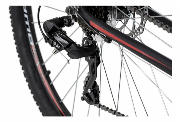 Aucune balade ne sera trop longue, aucune montagne ne sera trop haute: Le VTT semi-rigide XCEED de KS Cycling et son design rouge mate des plus cool vous convaincra également par ses équipements techniques complets!Ce VTT est équipé det#39,un dérailleur SHIMANO 21 vitesses. Le freinage est assuré par des freins à disques mécaniques à let#39,avant et à let#39,arrière. La selle ergonomique a un design parfaitement assorti au look du vélo.Outre le cadre, les jantes, le pedalier, la tige de selle, le guidon ou encore la potence sont en aluminium pour un VTT tout en légèreté.Cadre: semi-rigide aluminiumTaille de cadre: 46 cmCouleur: NoirFourche: suspendue avec tige Ahead 1 1/8etquot,Jeu de direction: AheadPotence: Potence Ahead en aluminiumGuidon: VTT en acierMoyeux: Moyeux avec support de freins à disqueJantes: aluminium double paroiPneus: A crampons 29etquot, x 2,10etquot, (54-559)Vitesses: Dérailleur 21 vitessesDérailleur AR: SHIMANO TourneyDérailleur AV: SHIMANO Tourney 3 vitessesLeviers de vitesses: SHIMANO ST-EF500Pignon: SHIMANO MF-TZ500 7 vitesses (28-14 dents)Pédalier: en aluminium SHIMANO Tourney FC-TY301 (Plateaux 42-34-24 dents)Roulement de pédalier: BSA à cartouchePédales: résine avec cage en acierSelle: Selle VTTTige de selle: aluminium etOslash, 27,2 mmFixation de selle: anneau de serrage à visFreins: À disque mécaniques (avec disque wave etOslash, 160 mm)Leviers de freins: SHIMANO ST-EF51Accessoires: SonnettePoids: environ 14,5 kgNos vélos sont prémontés à 85% (montage de certaines pièces, réglage freins, dérailleur..) et sont garantis deux ans, sauf pièces d’usure.